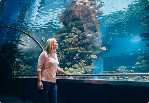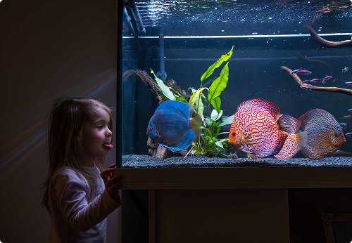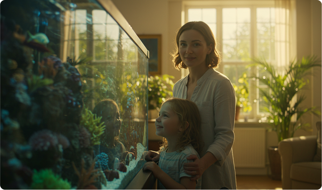 A custom-built, enclosed aquatics wall feature in the waiting area to promote calm